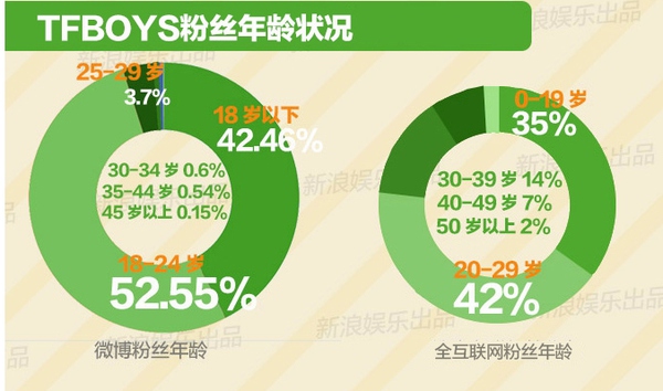 但王俊凯和易烊千玺的粉丝体系中,妈妈粉或更大年龄段的粉丝则是很少的,如此严重失衡的年龄结构下决定了粉丝整体购买力的偏弱。PS:不过从网络数据显示,TFboys出的专辑或周边以及代言的产品都取得了不错的销量和市场。