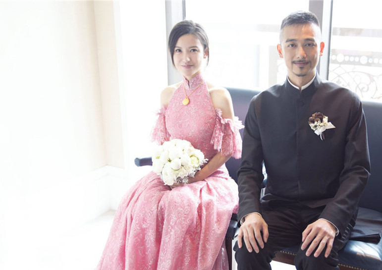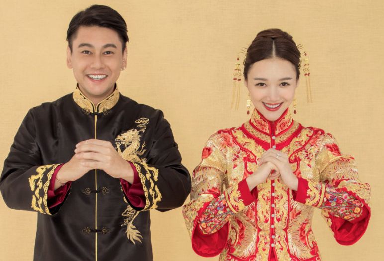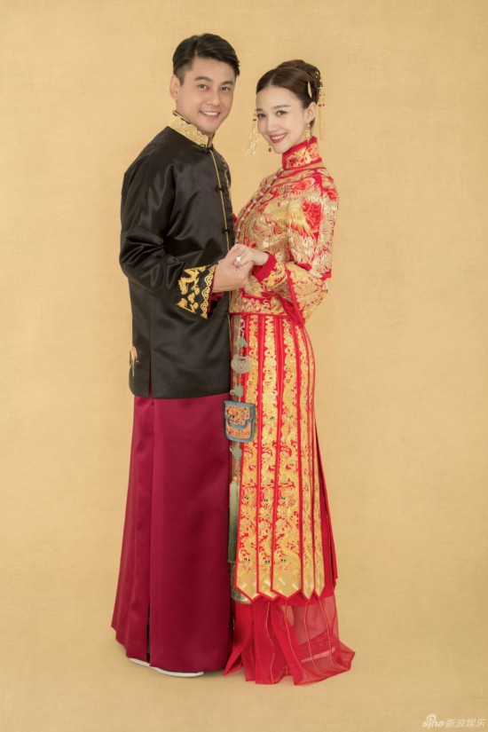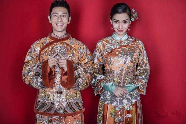 引发中式婚礼礼服风潮的教主和baby,当年的礼服超级漂亮,黄晓明的礼服风毛极好,而baby的则华贵大气。