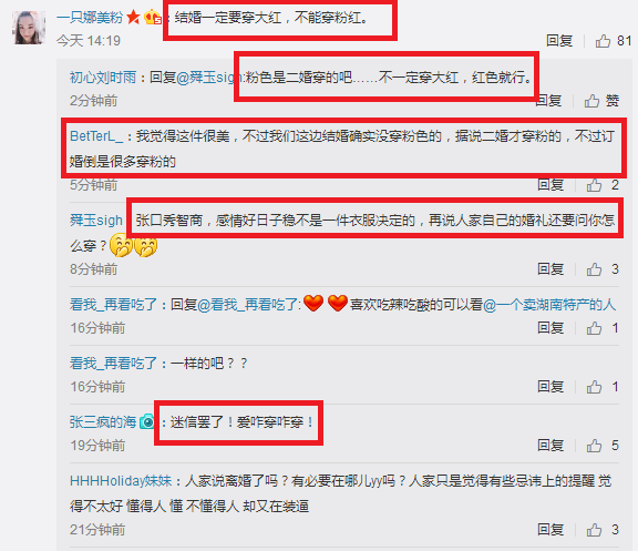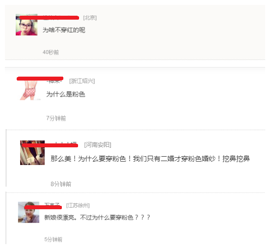 也有不少网友和小扒一样,家乡有二婚着粉的风俗,也对杨子姗的粉色婚服,表示看不懂。