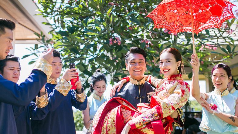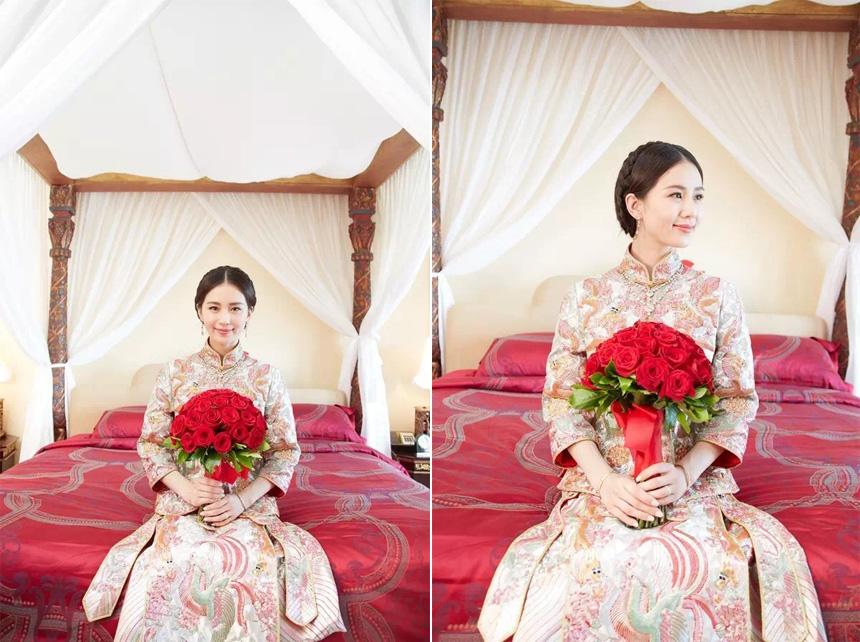 但小扒有个疑问,如果说台湾结婚有人穿粉色的话,那么为何去年嫁到台湾的女星韩雯雯,其中式婚服却非常讲究纯正呢?