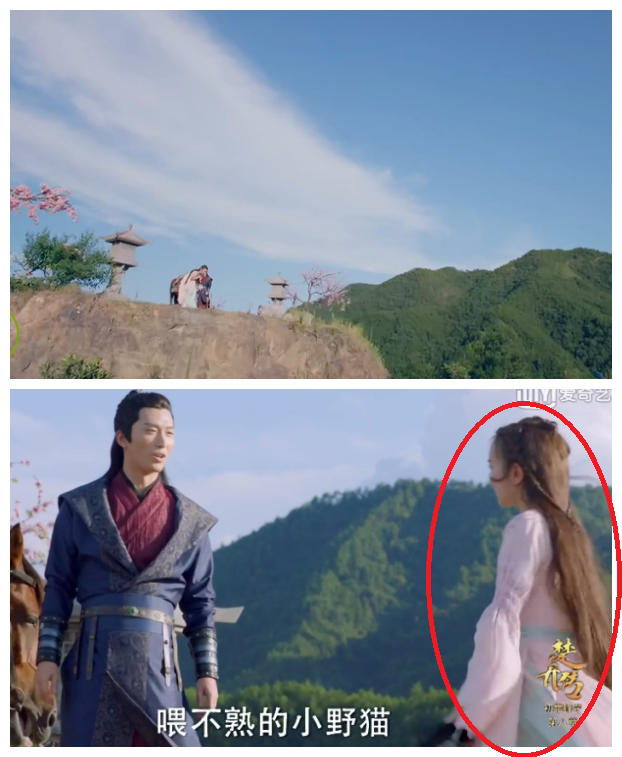 如果这一场戏替身做的还算精致用心,那么接下来燕洵和楚乔从山洞爬上来的对话戏,赵丽颖替身的不要太明显好吗?远景的楚乔,是模糊脸