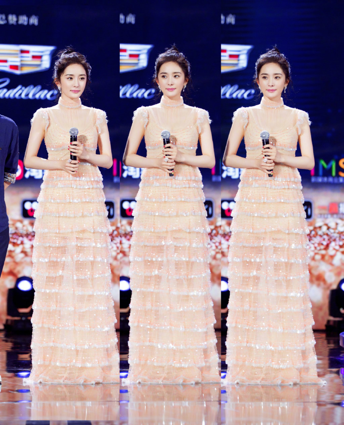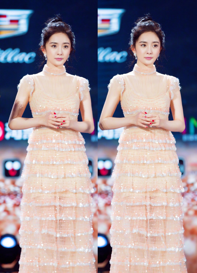 以至于,火急火燎的大幂幂,连赶两场发型都木来得及换惹,直接套上新裙子便美美的走了红毯。