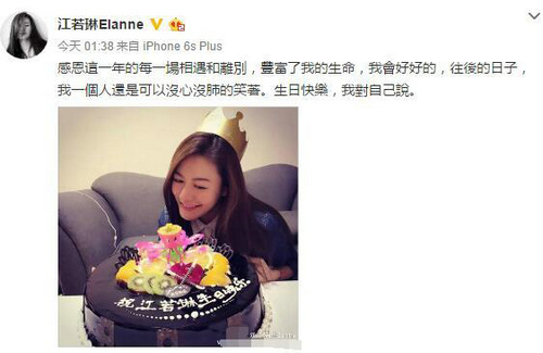 去年10月份,江若琳发微博称自己一个人还是可以没心没肺的笑着!等于单方面宣布分手。