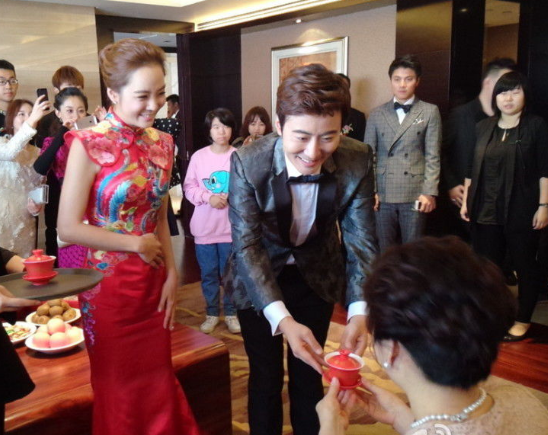 2014年10月14日,高梓淇和蔡琳举行婚礼,穿着中式礼服的蔡琳,格外的漂亮。