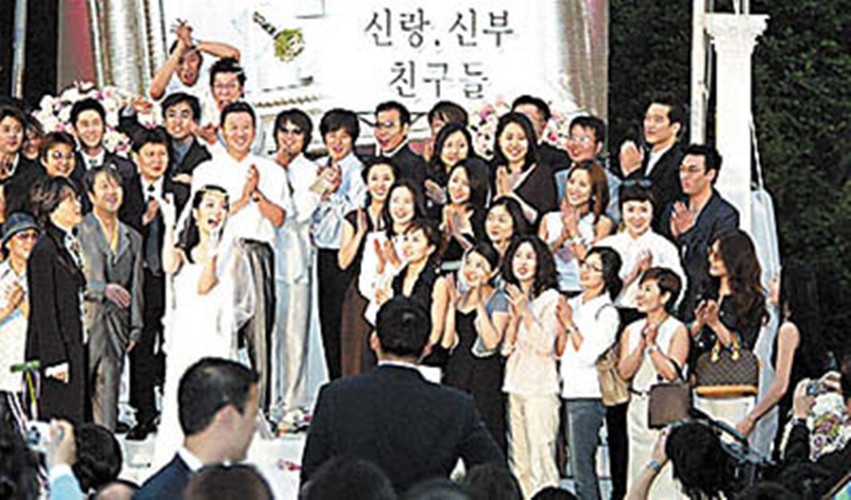 除了婚礼的硬件足够隆重奢华外,考验夫妻俩人气的嘉宾阵容也是够星光熠熠啦。当年参加婚礼的演艺圈名人,就有宋慧乔、裴斗娜、车太贤,加上其他的来宾,足足有2000多人!PS:认得出哪一位是乔妹吗?