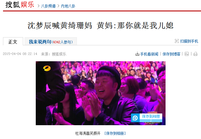 到被圈内人调侃,最豹笑的是沈梦辰2015年主持我是歌手时,被黄绮珊调侃儿媳妇(杜海涛喊黄绮珊黄妈)。