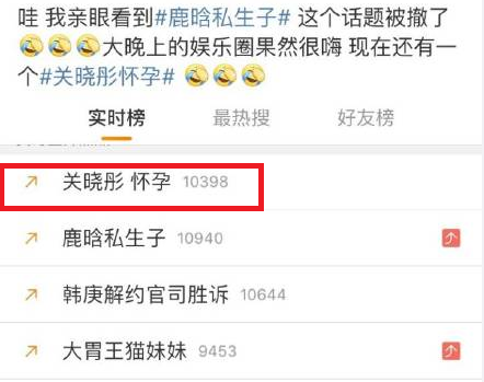 接着女方关晓彤也没能幸免,被说怀孕了???还一度上了热搜,看这热搜的画面,夫唱妇随的节奏嘛。