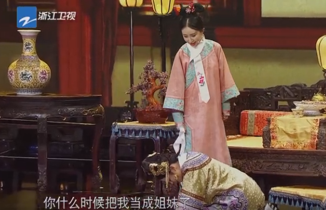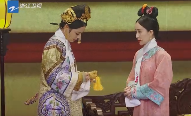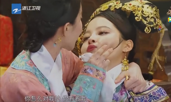 在全新的故事下,从一开始,辛芷蕾就是足够抢镜的。霸气的娘娘呵斥奴婢,一秒钟切换到华妃娘娘的雷霆模式。而辛芷蕾一直是眼神有肃气的女演员,所以对这类气场角色,能很好的掌控。你看,一个侧颜已经相当有故事感。