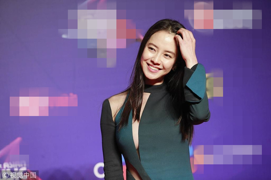 宋智孝——长发太随性了,韩国女明星都很喜欢发型自然。但这一身衣服选的太廉价了,风尘感太浓!且胸前想要春光乍泄,肩部莫名其妙要露,腰部挖空,腿部切割,袖子要大开,设计太繁琐重点太多,结果全部分散注意力。