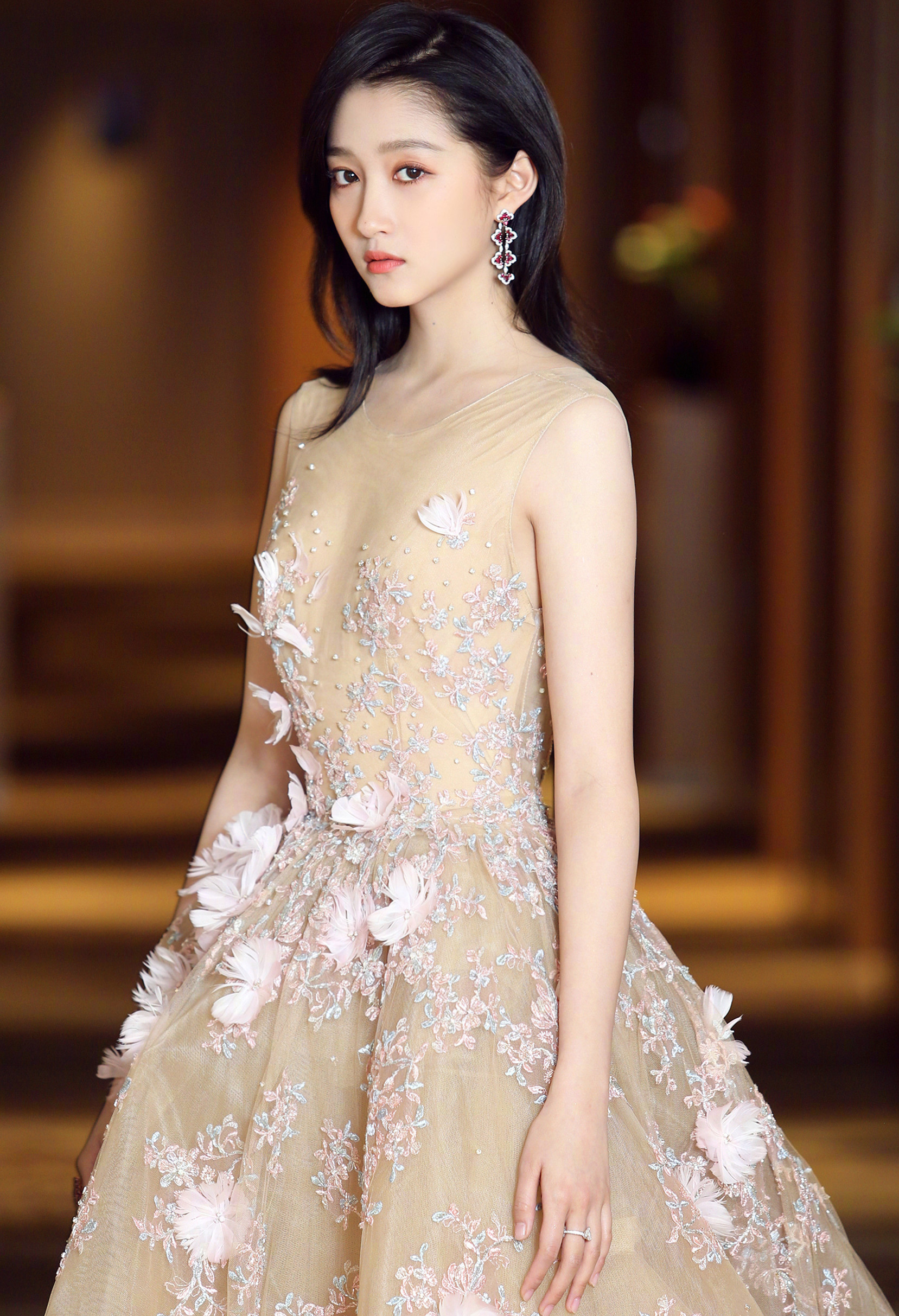 无修图,略微有一点苍老但是不影响整体气质,发型有点乱糟糟,大概是走红毯太急了些,但整体还是很美的。