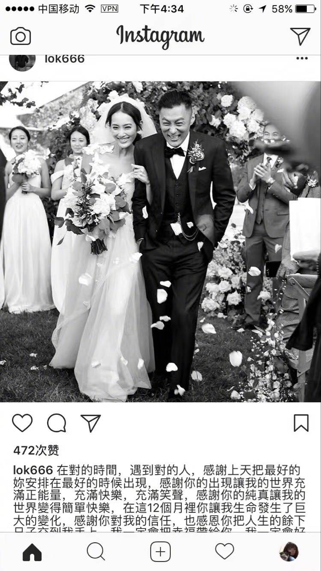 天啊,突如其来的虐狗!!!四叔余文乐居然在INS上公布自己的结婚照!!!nili男神大婚了!!!