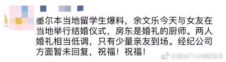 有网友爆料,两人是在墨尔本大婚,房东是婚礼的厨师!