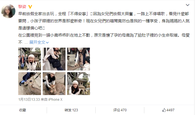 网友应该要感谢社交平台的丰富多彩和便利新鲜,尤其是对于追星族而言,在社交平台几乎随时可以扑捉到喜欢的明星最新的动态。甚至就连一些退出娱乐圈的明星们,也一样可以在社交媒体晒生活照与网友交流,比如香港女演员黎姿。