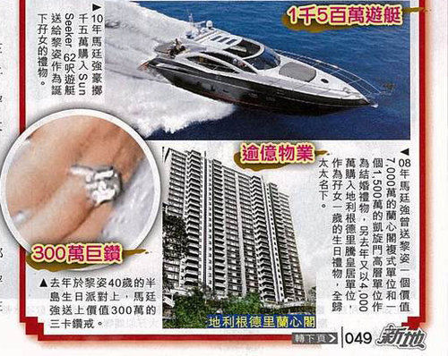 而且,马廷强对她真的很好,生双胞胎都有奖励,不但有近亿的物业单位,还送了价值一千五百万的游艇,黎姿真的被宠爱着。