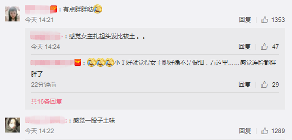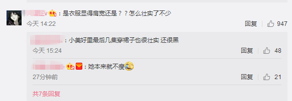 但也正是这组路透照,让很多网友直呼不接受!大部分的网友吐槽的重点都是在沈月的身材和颜值,说她胖了又壮了,也不知是不是衣服的原因!而有的网友直接说她在《小美好》里面本来就不瘦,而且还很黑~~~