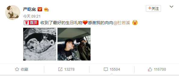 今天是农历腊八节,娱乐圈也传来好消息。明星严屹宽借今天生日之际,在社交平台公布自己喜当爹的消息,晒出了一张B超照片,也放了一张和爱妻杜若溪的合影~