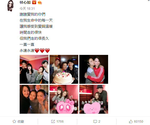 今天是林心如的生日,她在微博高兴的跟网友分享了一波庆生照。并PO文感叹生命中有朋友的重要,让自己感受到了爱与温暖的意义,虽然时间不饶人但有了友情和你们可以无惧时光侵袭,并且长长久久一路扶持到永远。