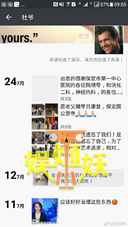 除了口述失身经历外,该女子还放出了几张实锤物料,其中包括杜志国的weixin朋友圈页面,截图中清晰可见杜志国去年7月24日是在河北保定第一中心医院为老父亲治病,杜志国还祈愿让父亲快快康复。
