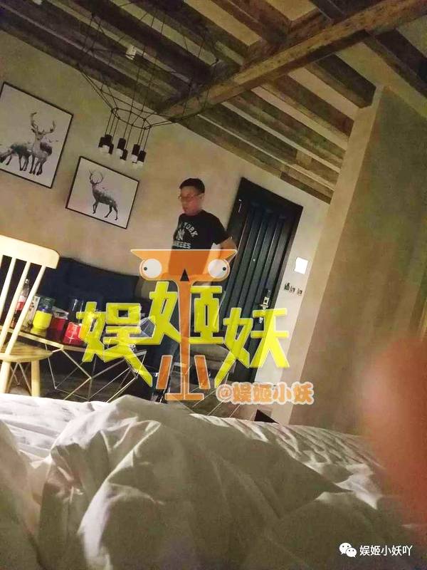 在该女子随后晒出的一张疑似酒店房间内的照片中,杜志国也是穿着这件字母T恤,并且绒款黑框眼镜和一样的发型。