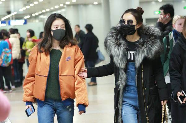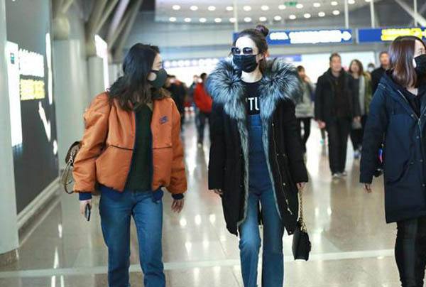 两大美女,猜得出她俩是谁吗?没错,橙色衣服的是小花张雪迎,而黑色墨镜又口罩的是赵丽颖啦。两个人机场偶遇相谈甚欢一路前行,全程没有摘下口罩哦。