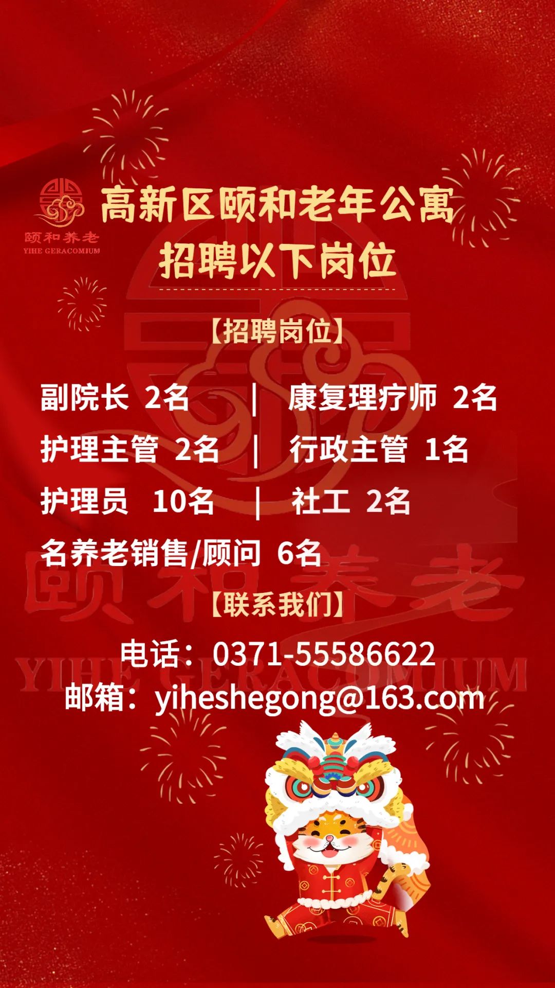 【颐和招聘】高新区颐和老年公寓高薪诚聘以下人员!
