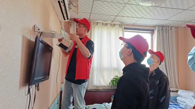 空调作为最常见的家用电器,为我们的工作、学习和生活提供舒适的环境,但使用一段时间后,由于静电作用和反复空气循环等原因,空调蒸发器翅片表面会集聚大量灰尘,造成气流堵塞,导致制冷效果降低,噪声和损耗增大,如果不能及时清洗还会产生异味,滋生细菌,进而危害人体健康,为了给养老院的爷爷奶奶们带来最佳的生活环境,志愿者立即开始了行动。在清洁空调期间,志愿者们分成三组,分别在三个楼层开展清洗工作,并且各小组志愿者也开展分工合作,男生负责拆除空调滤网并对空调内部进行消毒,女生负责清洗空调滤网,各自积极地完成自己所分配的任务。
