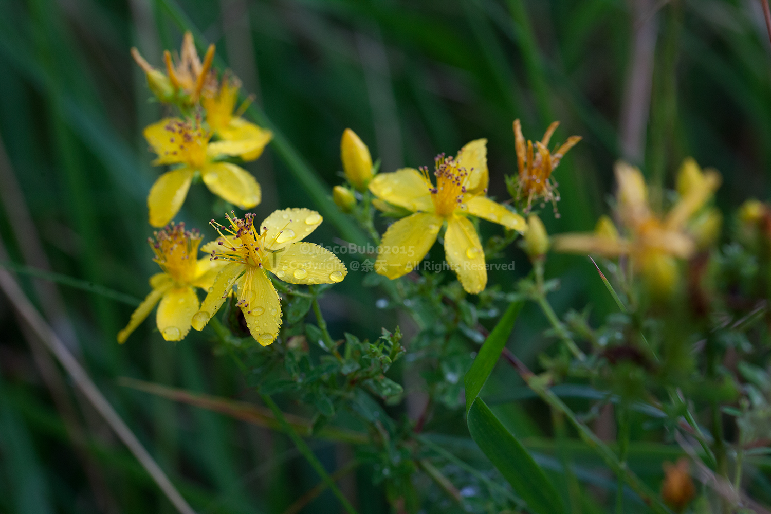 鼹鼠命中注定的裤子出现了!鼹鼠花痴一样看着裤子,旁边黄色的是贯叶连翘(Hypericum perforatum),喜欢生长在阳光充足的草地上。贯叶连翘分布非常广泛,在欧洲它是著名的传统药草圣约翰草(St John's-wort),在中国也是常用中草药。除此之外,还有粉色的石竹属植物和蓝色的婆婆纳属植物。