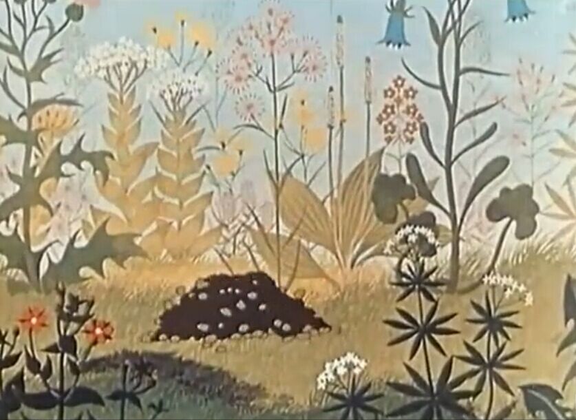 影片一开始,鼹鼠的土穴出口旁就有着大量的花草。只一个镜头中,就有大量的植物信息。