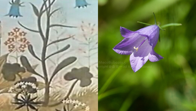圆叶风铃草(Campanula rotundifolia),欧洲草地常见的野花,很典型的基生叶和茎生叶不同型(下圆上细)的植物,在影片画面中也有体现,可见绘者观察之细心。