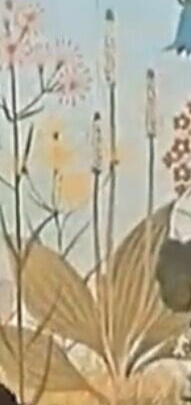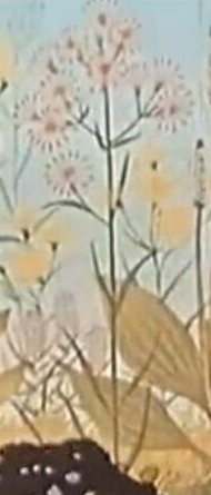 鼹鼠在水池边遇到了青蛙,青蛙传授了它一点人生经验,故事也随即发展到了制作亚麻布关键的一步。亚麻纤维存在于亚麻茎的韧皮组织中,需要沤浸脱胶去除部分胶质,使粘连纤维束得到部分松散,再经压轧、打麻加工成“打成麻”。青蛙帮助鼹鼠把石块推入水中压沉亚麻以沤浸脱胶,水池边是半日花科的金钱半日花(Helianthemum nummularium)。