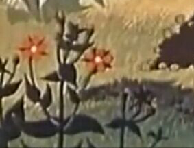 鼹鼠把染好的纱递给蚂蚁,发动众蚁织布。画面中我们可以看到欧洲广布的野草莓(Fragaria vesca),我们能吃到的草莓(Fragaria × ananassa)也叫凤梨草莓,是两个美洲的种类(原产北美的Fragaria virginiana和原产南美的Fragaria chiloensis)杂交而成的,在草莓选育出来之前,欧洲一直栽培野草莓食用。中国也有很多种野生的草莓属种类,但是都未被栽培驯化。