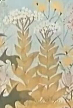 丝路蓟在动画片中出现了多次,这种叶子带刺的植物和国内常见的刺儿菜有几分相像。实际上这是另一种蓟属植物——丝路蓟(Cirsium arvense)。在中国它基本上是沿丝路分布的,拉丁名直译为田蓟,在欧洲是广布的种类。白色的细碎小花是蓍(Achillea millefolium),分布于北非、欧洲和西伯利亚,在中国是广泛栽培的观赏植物,野生分布仅在最北部几省。蓍属的种类在古代中国用于占卜,传说中让鲁班获得灵感发明锯子的锯草也可能是蓍属的某种。