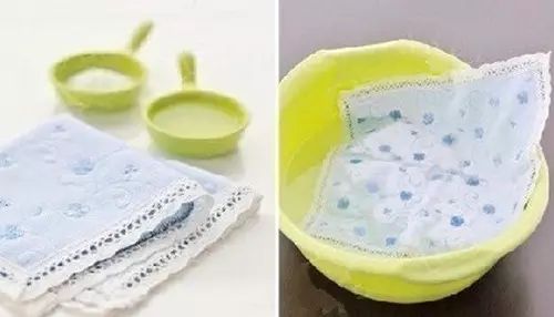 2、把浸有白醋的洗碗布盖在餐具的标签上,大约20分钟左右。