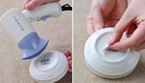 用吹风机对准标签的位置吹,质量稍好的不干胶条,很容易就撕下来了。如果,表面还沾有粘粘的胶,就用手里撕掉的标签反复粘到胶上,没几次胶就会被标签粘下来了,这个方法比较适合优质的胶,如果是劣质的,效果不理想。