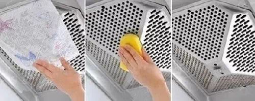 将我们平时用的卫生卷纸放入冰箱的冷藏室里,它就能慢慢的吸附异味啦!一般一个月换一次就可以了,换下来的带有潮气的卷纸,刚好用来擦吃饭时掉在餐桌上的汤汁,厨房地砖上的油渍,都很好用。