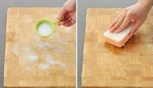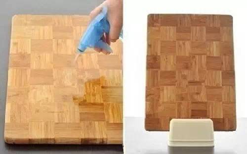 先用洗洁精和清水把案板清洗干净,然后在案板上撒一勺盐,用洗碗海绵蘸一点点水后,反复擦拭案板的表面,然后用冷水冲洗干净。再将白醋和水以1:2的比例调好后倒入喷壶中,喷在案板的表面,然后放到通风的地方,自然风干即可。