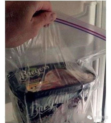 3. 把冰淇淋装入保鲜袋储藏,这样下次拿出来吃,不会硬邦邦地挖不动。