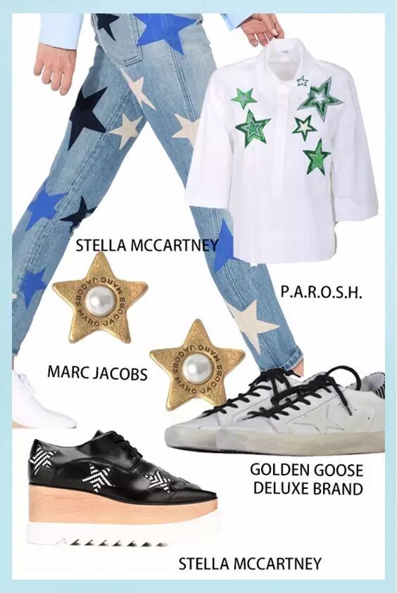 星星元素作为2017春夏设计师的心头爱,充分体现在STELLA MCCARTNEY、JIMMY CHOO、GIVENCHY、REDVALENTINO等大热品牌上,明星挚爱,我们同样热爱,愚人节就是让自己成为最闪耀的那颗‘星’!