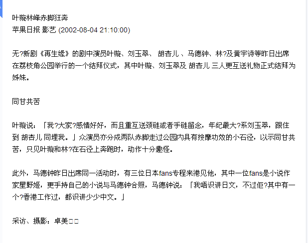 (下图结拜新闻)http://mmbiz.qpic.cn/mmbiz/EJM8WuDfM6YafYx0bvE2eoBFBxrR8DvoiaUjTicp7J6BiabkdAlQ4bzIzYYHXKHicg5BysG3fBpQp4Qj72BDZROlvQ/0叶璇、杨怡、胡杏儿TVB时期的明争暗斗" TITLE="【TVB系列】