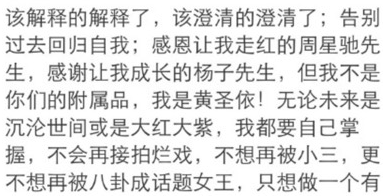 黄圣依杨子就是非常典型的用一个个谎言去掩盖一个真相,但所有真相总会有昭告天下那一天,不仅仅是黄圣依,娱乐圈里还有好多用谎言去掩盖谎言的人和事,时间慢慢都会给出答案的。