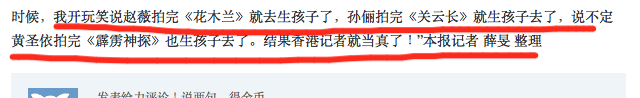关于这件事杨子第一个版本的解释是:这是我之前开的一个玩笑,我说赵薇拍完《花木兰》去生孩子了,孙俪拍完《关云长》去生孩子了,也许黄圣依拍完《霹雳神探》也会去生孩子。