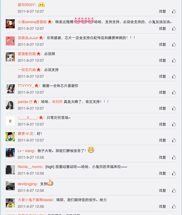然后可怜的小粉丝们,每天都在杨子微博里跪舔,各种感谢。