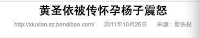 这时候港媒传出黄圣依怀孕的消息,可没过多久杨子出来辟谣。