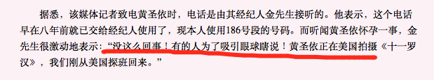 黄圣依经纪人的回答是:有人为了博眼球乱说的,黄圣依目前正在美国拍摄《十一罗汉》。