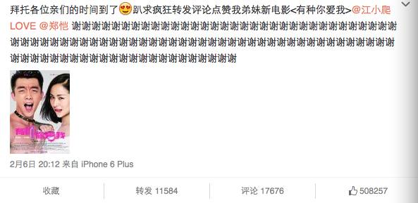 然后邓超也在微博上替郑恺宣传过郑恺和江一燕主演的新电影。