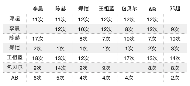 总结亲密度关系:包贝尔邓超大于包贝尔陈赫大于包贝尔李晨