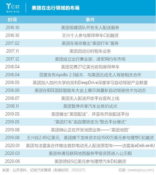 2016年10月,美团组建团队开发无人配送服务,尝试发力出行领域。在随后的时间里,王兴先后投资/并购摩拜单车、推出美团打车服务、启动分时租车服务、成立出行事业部、涉足自动驾驶领域……