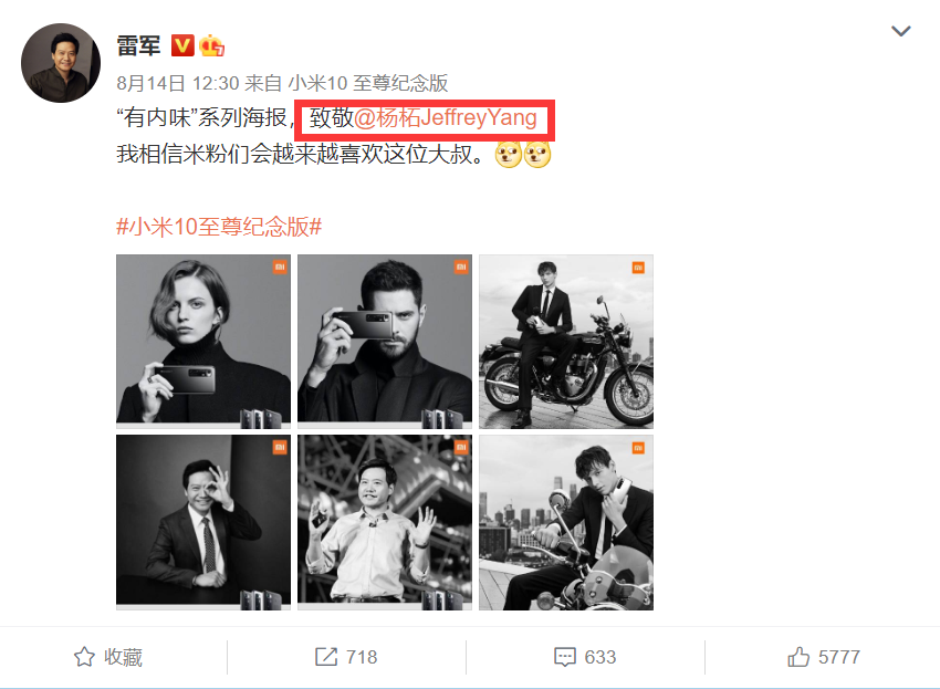 杨柘的营销功底,毋庸置疑。他不仅成功帮三星打造了狂销百万台的“心系天下”高端系列,还给华为打造了“爵士人士”标签,成功让华为在高端市场站稳脚跟。在小米,杨柘也延续了自己在营销领域的才华。