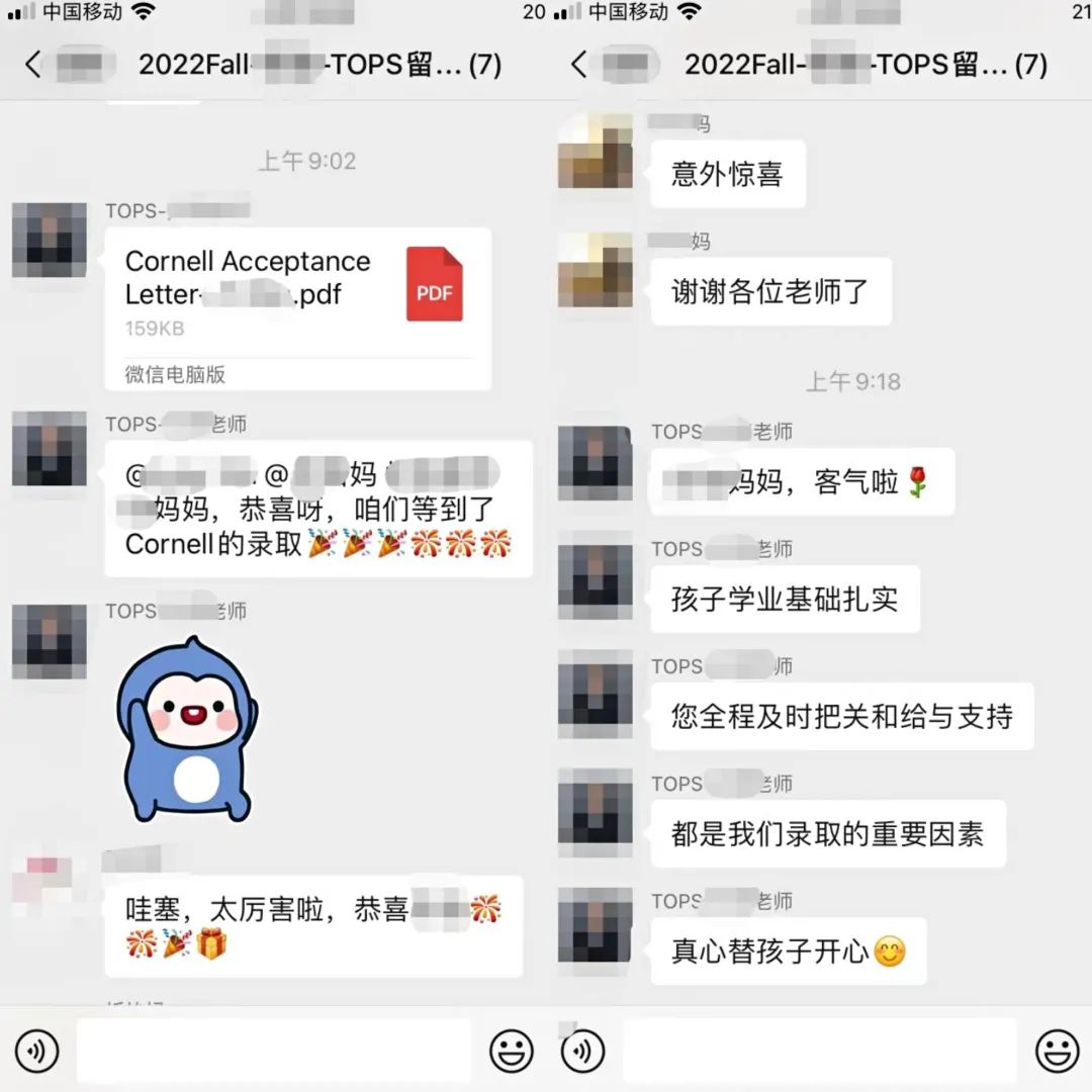 在今年3月初,密歇根大学安娜堡分校的录取,让Y同学TOP30的转学目标已然达成,今天藤校康奈尔大学的录取更是让团队与Y同学一家人惊喜不已。