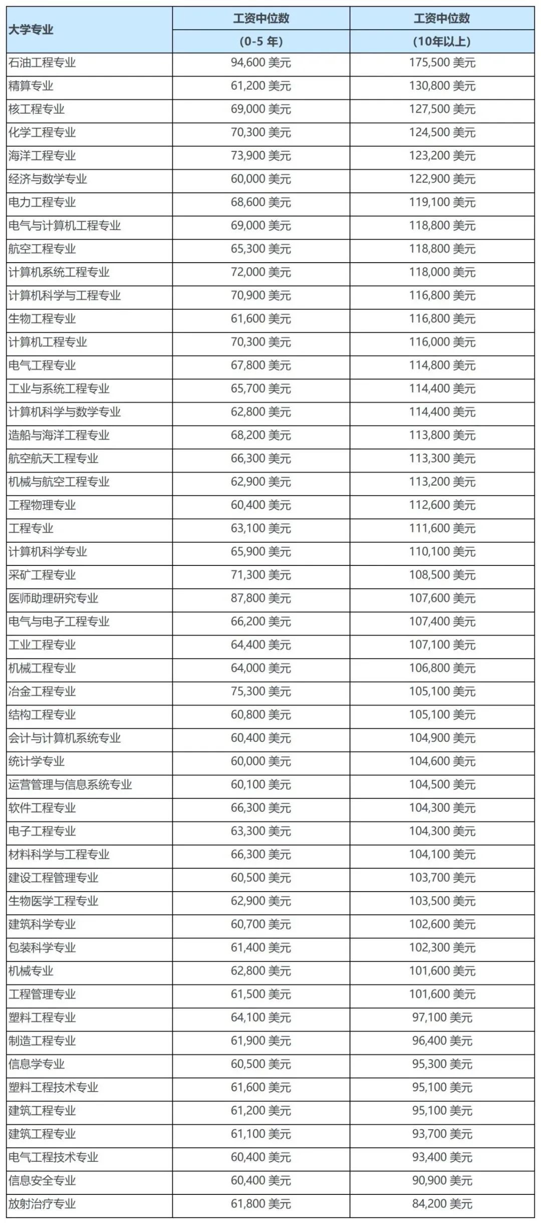 以下是起薪最高的美国大学专业,对于留学美国之后希望能有不错的就业前景的同学来说,可以借鉴参考。